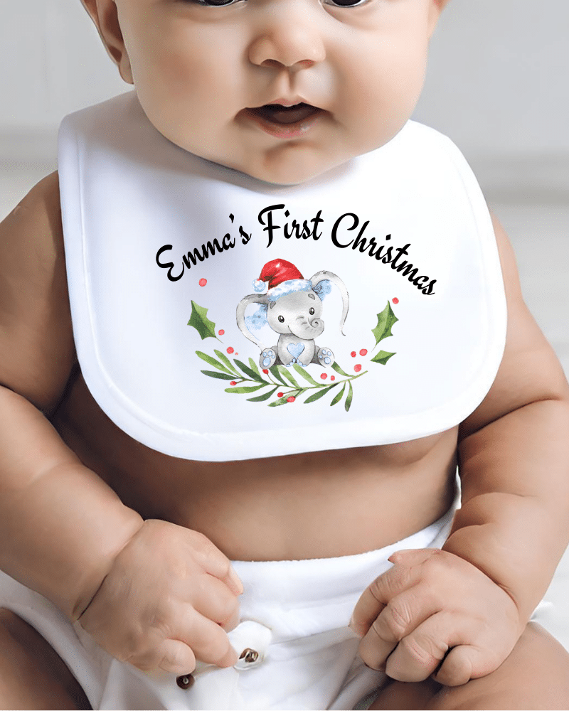 Each bib is designed with a sweet Christmas illustration and customised with your baby’s name and year — making it a perfect keepsake for their very first Christmas.