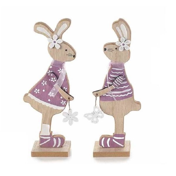 Wooden decorative bunnies with bow and beads. Measures: cm 11.5 x 2 x 14.5 H
