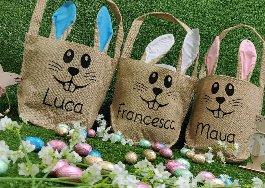 These Burlap Easter Bunny Baskets are made of durable and high-quality material, perfect for holding eggs and other Easter treats. The baskets are a great way to show your love for the season, and make the perfect gift for the little ones. The Baskets are available in a variety of colors, making it easy to find one that matches your style. The basket is often decorated with an Easter theme and filled with Easter treats like chocolate eggs, jelly beans, and marshmallow chicks. Measuring approx – 20 x 20 x 22cm.