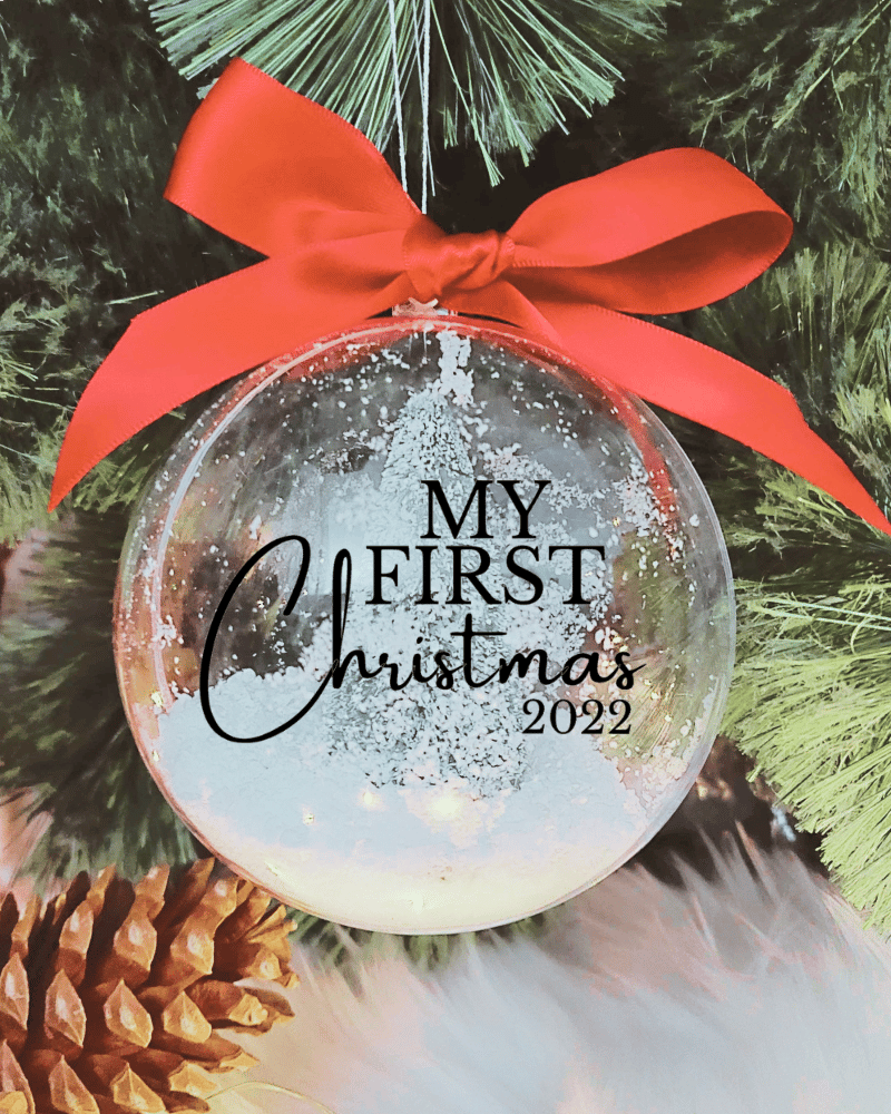 Each bauble is clear all around and comes with a hanging string and can also be customised, on order, with a selection of text colours (terms and conditions apply), a filler of your choice and also a bow. Please choose the selections from the drop-down box.
