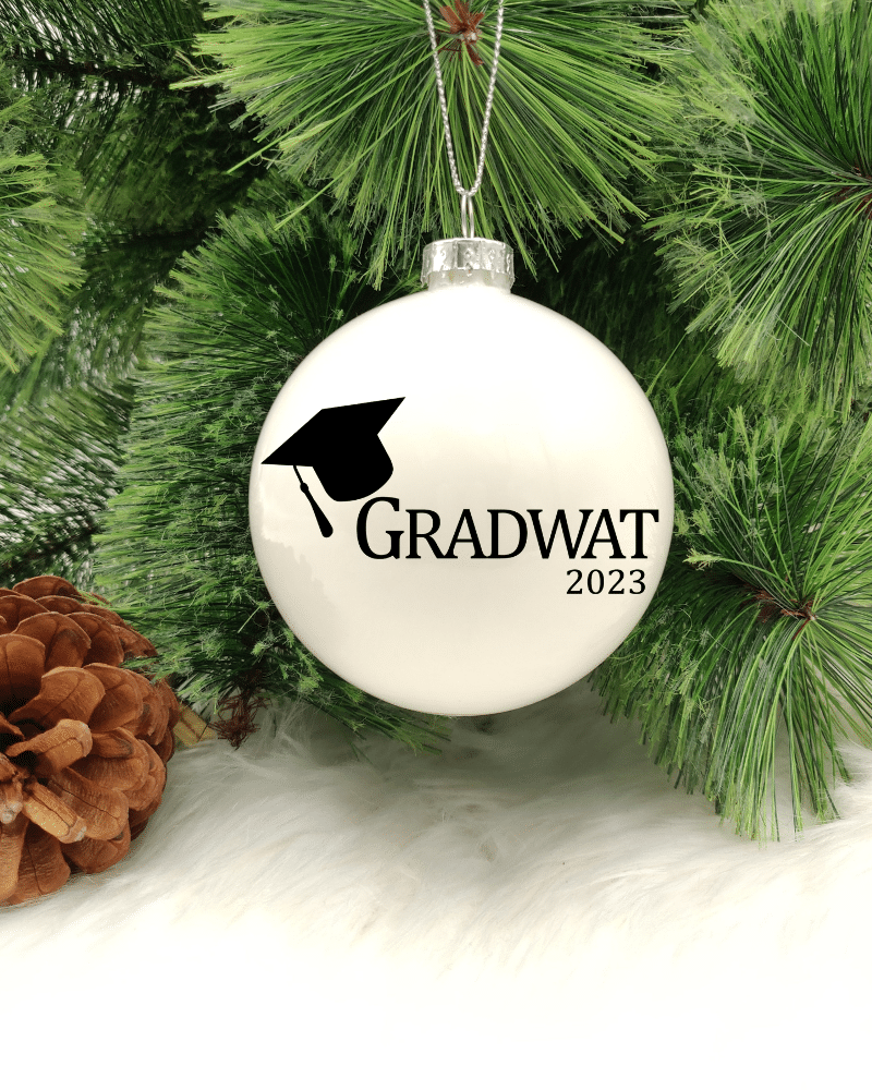 Each bauble has a white gloss finish with a silver hanging string and can also be customised, on order, with a selection of text colours (terms and conditions apply) and bow colour of your choice. Please choose your vinyl text and bow colour from the drop-down box.