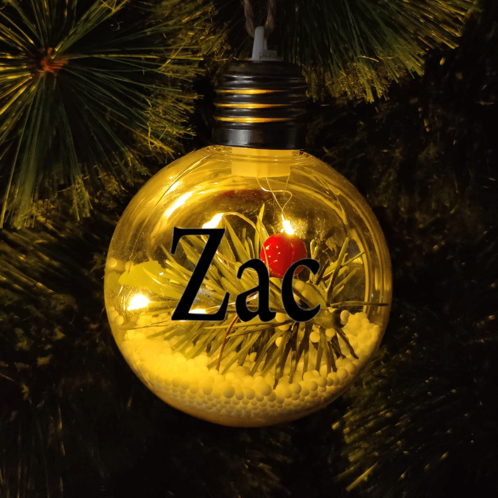 Personalised with Font Name Zac – 8cm Light Up Bauble
