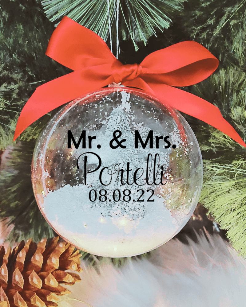 Spouses Personalised with Name and Date – 10cm Acrylic Bauble