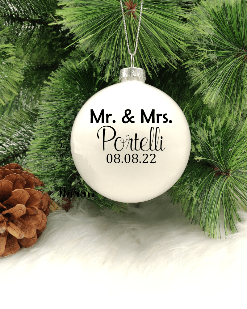 Spouses Personalised with Name and Date – 8cm Glass Bauble