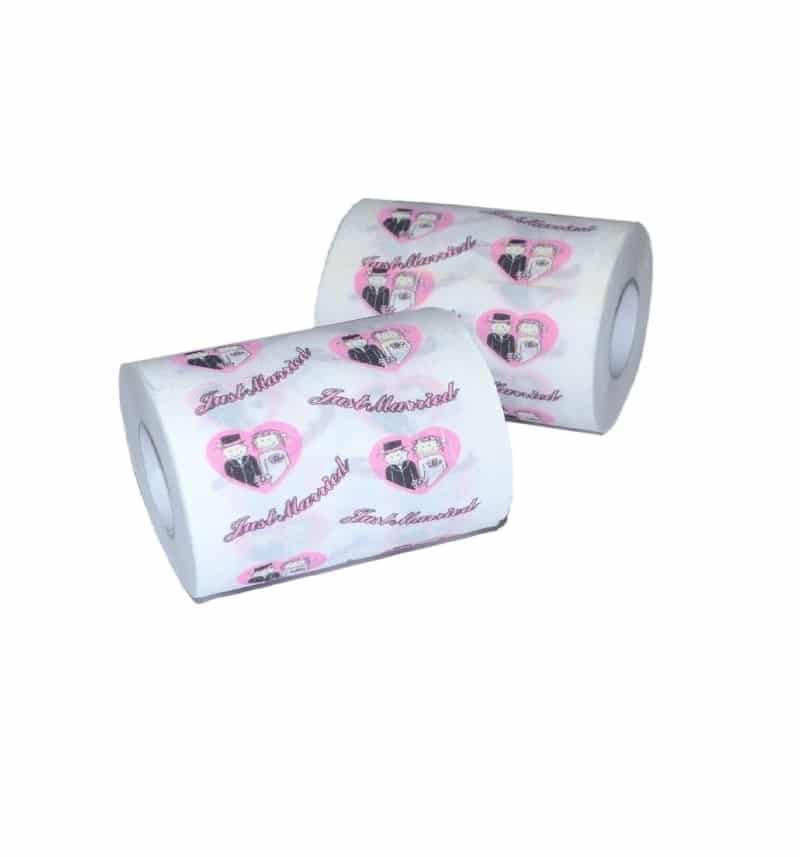 This Mr & Mrs wedding-themed bridal design is a perfect touch for use in all the toilets at the wedding venue or for the honeymoon suite. Each Pack has 2 rolls.